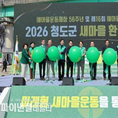 [파이낸셜데일리 박미화 기자] 청도군은 지난 13일 청도천 둔치 일원에서 '새마을 운동 제창 56주년 기념 및 탄소중립을 통한 녹색경제로의 대전환' 기념행사를 성황리에 개최했다. 이번 행사는 기후변화와 환경오염 등 전 지구적 환경 위기 속에서 ‘탄소중립’과 ‘자원재활용’을 통한 녹색경제 실현을 목표로, 새마을운동의 시대적 역할을 재조명하고 제2의 글로벌 새마을운동으로의 전환을 선언하는 의미 있는 자리로 마련됐다. 이날 행사에는 이만희 국회의원을 비롯해 이철우 경북도지사, 최형재 새마을중앙회사무총장, 박성만 경북도의회 의장, 전종율 청도군의회 의장, 전인주 청도군새마을회장, 신창언 한국자원순환단체총연맹 회장 등 주요 인사와 군민 800여 명이 참석해 청도군의 환경 보전 노력에 힘을 보탰다. ‘탄소중립 새마을’을 주제로 진행됐으며, 새마을운동 제창 56주년을 기념하는 표창 수여식과 환경보호 활동에 기여한 군민을 대상으로 한 환경유공자 표창 수여식도 함께 열려 의미를 더했다. 특히, 이번 행사에서는 재활용품을 실은 차량들이 지역을 순회하는 ‘재활용품 적재 차량 순회’ 프로그램이 눈길을 끌었다. 청도군새마을회는 지난 2000년부터 26년 동안 ‘재활용품 수집 경진대