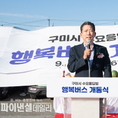 [파이낸셜데일리 박미화 기자] 구미시는 시민 이동성 향상과 대중교통 혁신을 위해 지난해부터 현재까지 총 113.4억을 투입해 대중교통 서비스를 단계적으로 개선하고 있다. 앞서 지난 29일, 선산터미널에서 「수요응답형 행복버스(13.8억, 이하 행복버스)」의 개통식이 열렸다. 10월 1일부터 본격 운행되는 행복버스는 선산·무을·옥성·도개면 등 5개 지역의 24개 노선에 투입된다. 시는 올해 초 15인승 소형버스 12대를 확보했으며, 운행 지역 대상으로 수요조사와 주민설명회를 거쳐 운행을 준비해 왔다. 행복버스 도입은 승객 수가 적어 비효율적이었던 일부 지역에 버스 운행 문제를 개선하기 위한 것으로, 대형버스가 접근하기 어려운 마을 안까지 진입할 수 있어 교통 사각지대가 해소될 전망이다. 시는 「초정밀 버스정보시스템(BIS)(11억)」 구축이 완료됨에 따라, 오는 10월 1일부터 한 달간 본격 시범운영에 나선다. 해당 사업은 위성항법시스템(GNSS)을 활용해 시내버스 위치정보를 1초 단위로 수집·갱신하고 시민들에게 실시간으로 제공하는 차세대 교통정보 서비스다. 이는 정확한 실시간 도착 정보를 제공해 기존의 지연·불안정 문제를 해소한다. 특히, 시민들은 모바일 앱