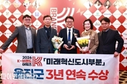 [파이낸셜데일리 박미화 기자] 울진군은 25일 서울 더 플라자호텔에서 열린 ‘2026 K-브랜드 어워즈’시상식에서 3년 연속 미래혁신도시 부문 대상을 수상했다고 밝혔다. TV조선이 한국 대표 브랜드의 우수성을 알리고 응원하기 위해 제정된 ‘2026 K-브랜드 어워즈’는 국가 경제 발전에 기여한 우수 콘텐츠 및 기업과 기관의 브랜드를 선정하여 수여 하는 상이다. 울진군은 울진형 복지체계와 수소 산업생태계 구축을 통해 지방소멸의 위기를 극복하고 지역발전과 더불어 탄소중립시대에 국가 경쟁력을 높일 수 있는 기반을 마련한 공로를 인정 받았다 군은 ▲ 울진 원자력수소 국가산단 유치 ▲울진형 복지체계 구축 ▲울진관광 1,000만 시대 준비 ▲농·어업과 산림의 대전환 ▲군민과 소통하고 섬기는 행정 등을 추진해 지방정부 시대를 선도할 수 있는 미래혁신도시의 기틀 마련에 노력하고 있다. 울진군 관계자는“이번 수상은 울진의 변화와 도전을 군민 모두와 함께 추진해 온 결과”라며“우리군은 앞으로 원자력수소 국가산단을 성공적으로 조성해 울진의 미래 100년을 열고, 아이부터 어르신까지 모든 세대가 안심하고 행복할 수 있는 전국 최고의 복지도시 울진을 반드시 완성할 것”이라고 전했다